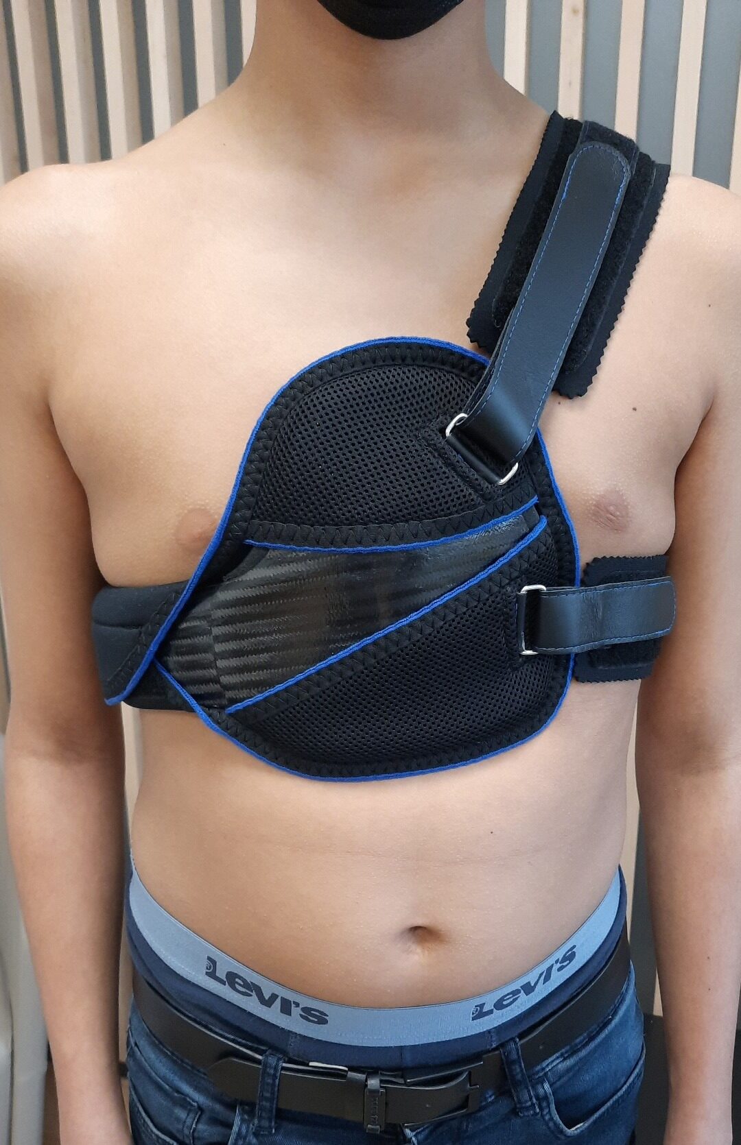 Bei einer Kielbrustorthese handelt es sich um ein individuell angefertigtes Hilfsmittel, durch das im Zuge einer Thorax-Therapie kontinuierlichen Druck (Kompression) auf die Kielbrust ausgeübt wird.