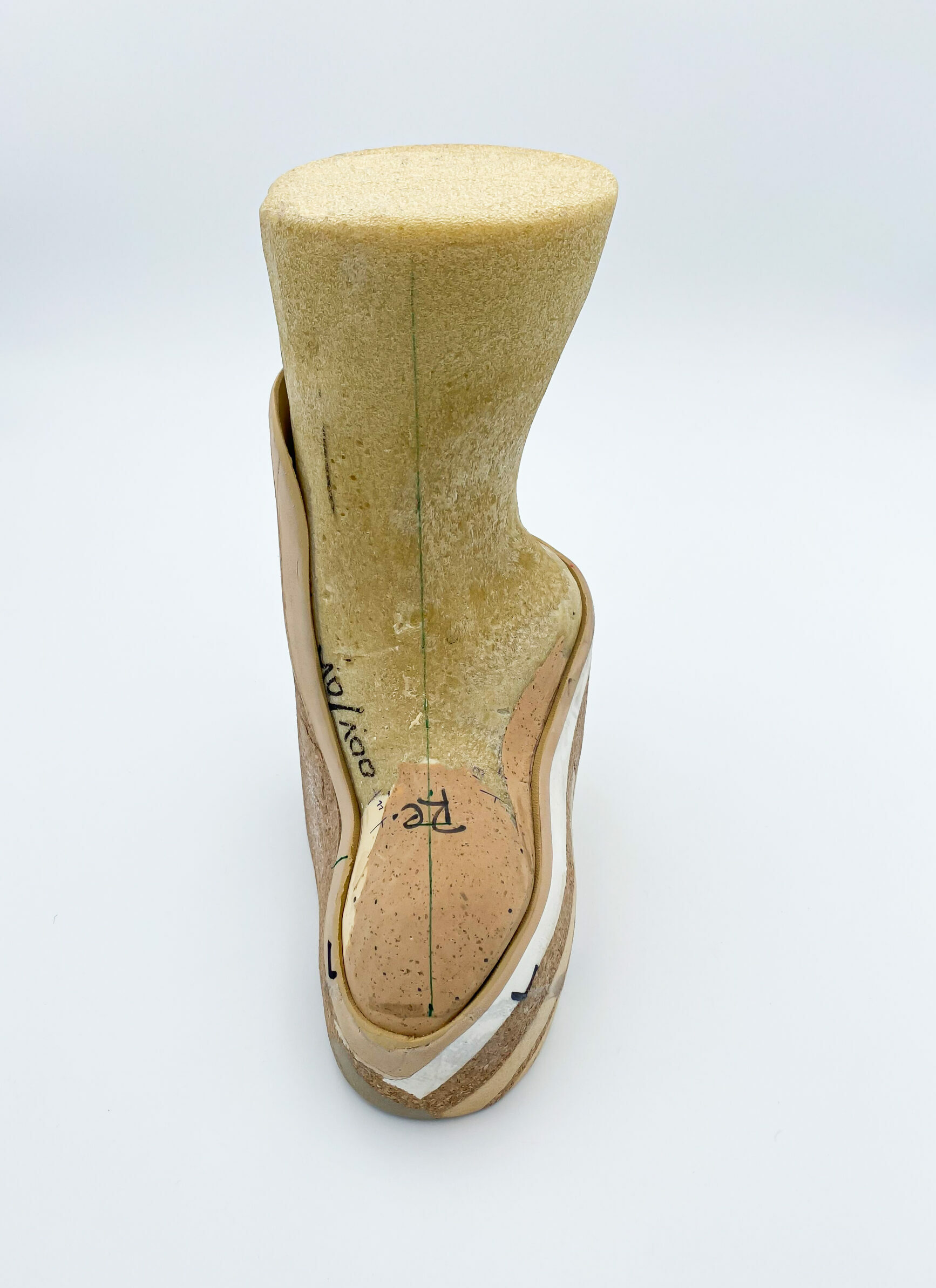 6. Sind die Beinleisten und die Fußbettung einmal erstellt, dann werden weitere Probeschuhe mit den Bettungen angefertigt. Dies hat das Ziel, die Beinstellung und die Passform final zu prüfen.